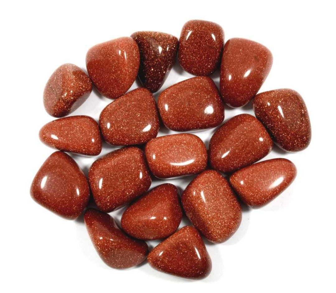 Red Goldstone is said to be the "Stone of Confidence and Ambition", encouraging motivation and drive. It is an uplifting stone, encouraging a positive attitude. Goldstone is said to promote vitality and help to lift anxious energy to a happier mindset. Despite